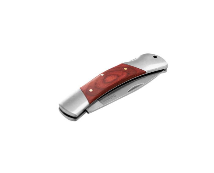 Jak už název napovídá, CAMPY je skvělým pomocníkem při kempování, rybaření nebo jako ruční skládací nůž v lese pro jednoduchou přípravu jídla a podobně. Ideální velikost zajišťuje vynikající úchop. Rukojeť je vyrobena z kombinace imitace červeného dřeva a kovových prvků. Na zadní straně rukojeti se nachází tlačítková pojistka čepele a otvor pro provlečení šňůrky. Délka čepele je 6,5 ??cm, má tvar drop-point s vysokým, plochým broušením. CAMPY je univerzální skládací nůž za dobrou cenu a s dobrým tvarem, což ho předurčuje k každodennímu venkovnímu použití.