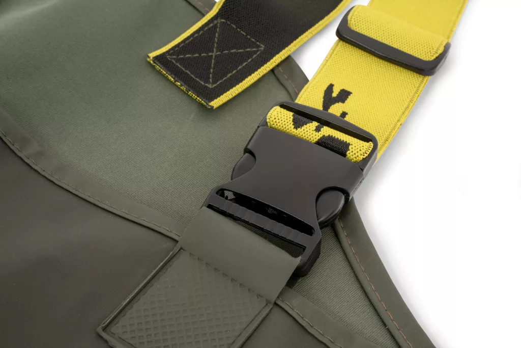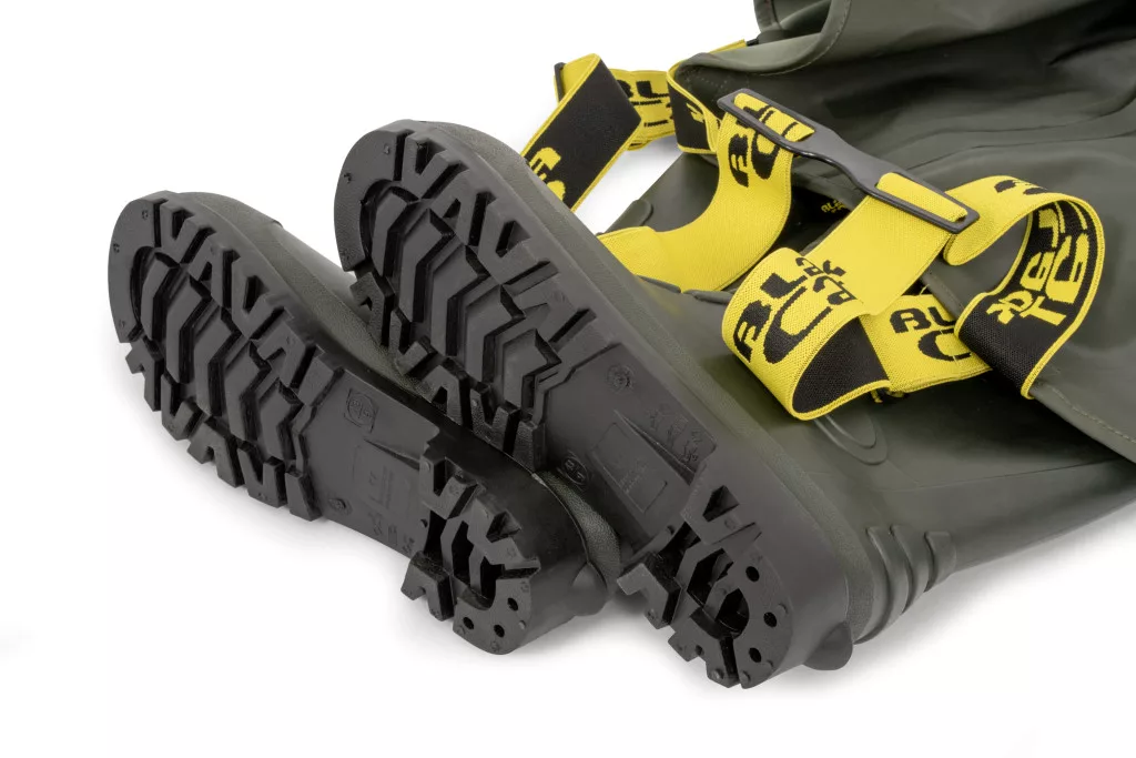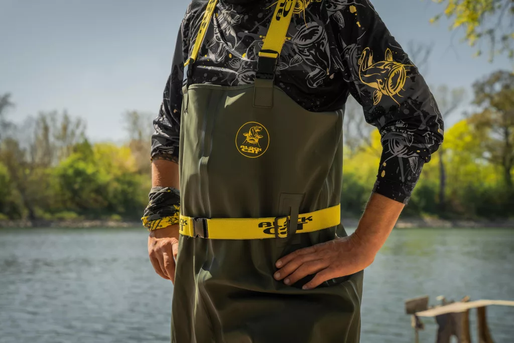 Inženýři Black Cat vědí, že při dřepu nebo kleku ve vodě se voda může snadno dostat dovnitř. Proto mají brodicí kalhoty Green Booted Waders vysoko střižený zadní díl, minimalizující riziko zatékání i během nejaktivnějšího rybolovu. Pro dlouhotrvající pohodlí najdete v sedací části měkkou, pletenou podšívku, která poskytuje extra komfort i během hodin strávených v chladné vodě. Volba materiálu také není náhodná: kombinace 90% PVC a 10% polyesteru zaručuje mimořádnou odolnost a voděodolnost, odolávající opotřebení způsobenému hustou vegetací a ostrými terénními překážkami. Bezpečný pohyb je nezbytný jak na břehu, tak ve vodě. Speciálně navržená, dobře přilnavá podrážka boty zajišťuje stabilní chůzi i na kluzkých površích, takže se můžete s jistotou pohybovat i v nejtěžším terénu. Pro dokonalé přizpůsobení jsou brodicí kalhoty vybaveny plně nastavitelným brodicím opaskem a ramenními popruhy, z nichž každý je zdoben charakteristickým logem Black Cat. To vám umožní přizpůsobit kalhoty přesně vaší postavě, zajišťující maximální volnost pohybu a pohodlí. Tento model je k dispozici ve velikosti 41 (UK 7), ale řada Black Cat Green Booted Waders je k dispozici i v dalších 5 velikostech (od UK 8 / EU 42 do UK 12 / EU 46), takže si každý najde ten ideální kus. Zeleno/žlutá barevná kombinace není pouze praktická, ale také dodává stylový vzhled na břehu.