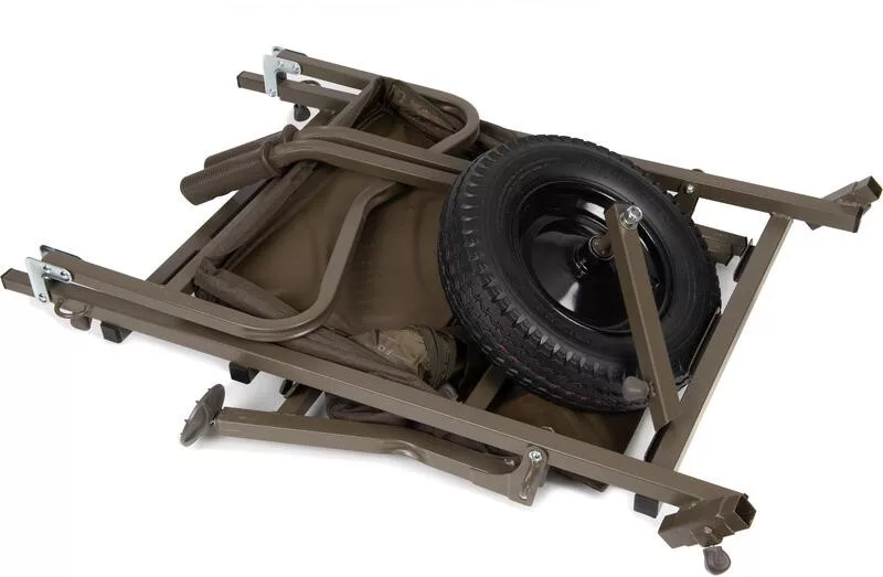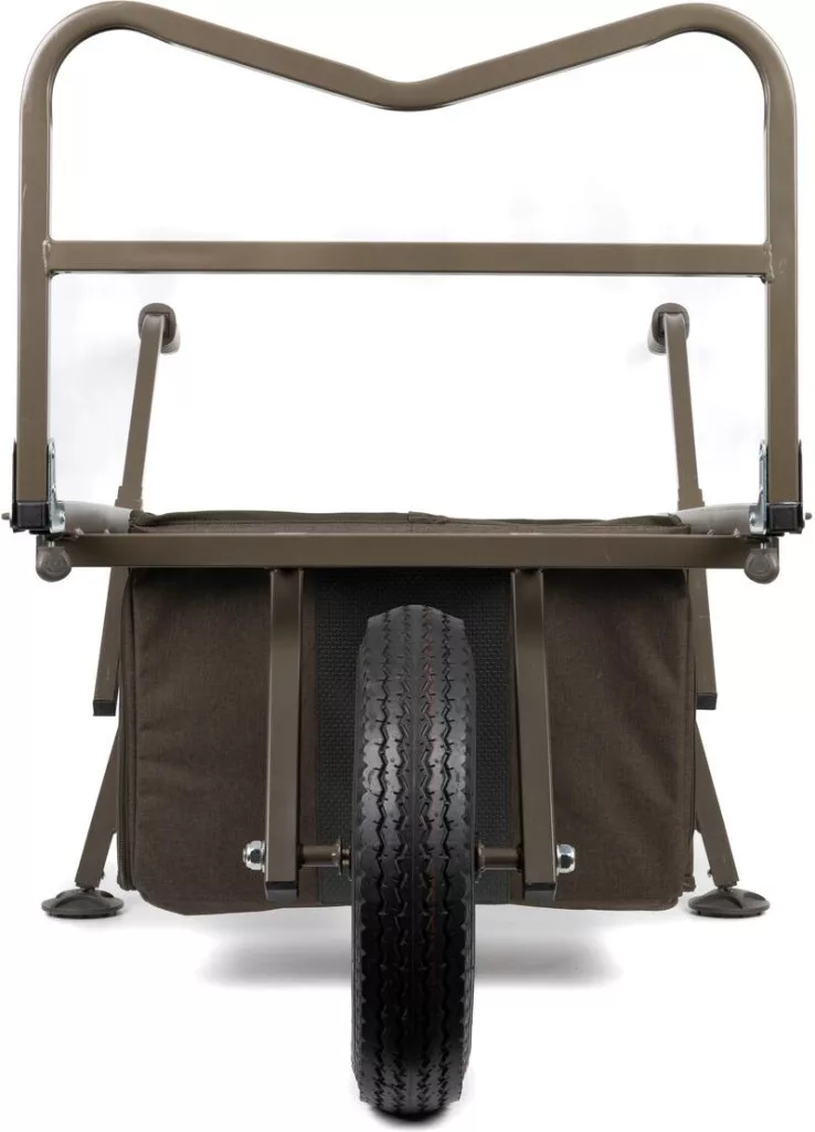 Vozík je vyroben z pevného ocelového rámu, který dlouhodobě odolává intenzivnímu používání. Velikost nákladového prostoru je nastavitelná: lze ji měnit v délce 90–113 cm a šířce 55 cm, takže na něj lze snadno umístit vybavení různých velikostí. Nafukovací pneumatika a ložiskové kolo lze rychle demontovat a namontovat, což usnadňuje přepravu a skladování. Široké bahenní nohy s nýty zajišťují zvýšenou stabilitu a přilnavost i v blátivém, nerovném terénu.
