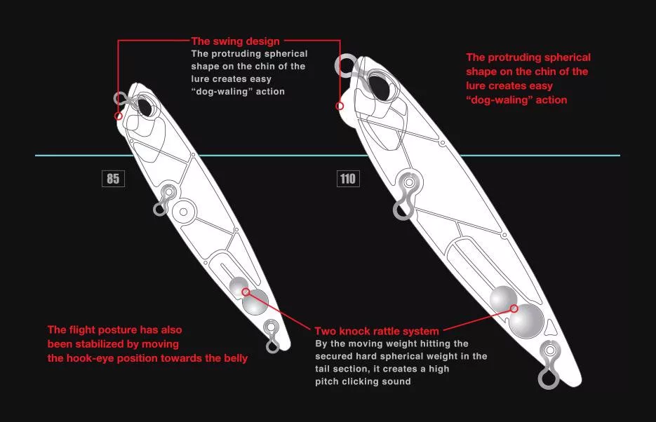 Byl rozšířen o užší „dog-walking“ pohyb, který je vhodný nejen pro prohledávání velkých ploch, ale je účinný i ve vodách pod tlakem. Děděním bočního pohybu modelu 110, Pencil 85 pomáhá k úspěšnému úlovku s pevnější akcí.
