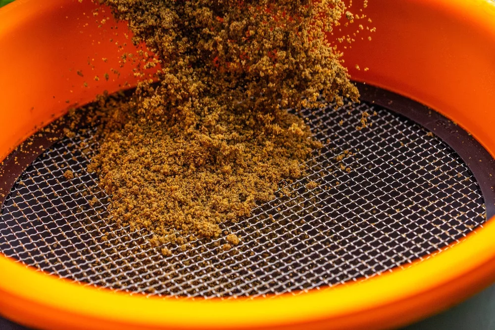 3 mm je ideální pro jemné krmení nebo živou nástrahu. Nebo dokonce pro odstranění velkého množství krmných částic z krmení v zimních měsících. 4 mm je perfektní pro každodenní použití, takže je ideální pro živé materiály a vynikající pro prosévání krmení a zemin. Větší, 6 mm síťovina je vynikající pro krmení bohaté na semena, zeminy pro tekoucí vody a perfektní pro rychlé odstranění nečistot z živých materiálů. Síto se velmi dobře upevňuje k rámu a nepohybuje se během používání. Pro odstranění stačí otočit a vytlačit desku. Síťovina je vyrobena z tkané nerezové oceli, takže je pevná a odolná.